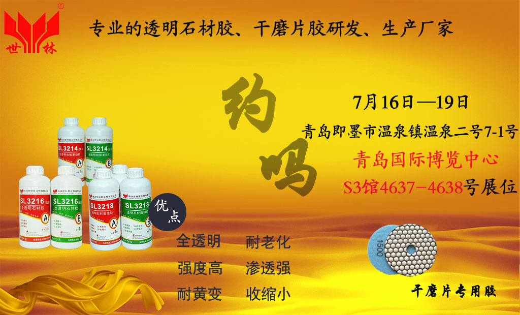 世林膠業(yè)參加了2016年青島石材展會(huì),展會(huì)時(shí)間:2016年7月16-7月19日,展會(huì)地點(diǎn):青島國(guó)際博覽中心S3館4637-4638號(hào)展位。